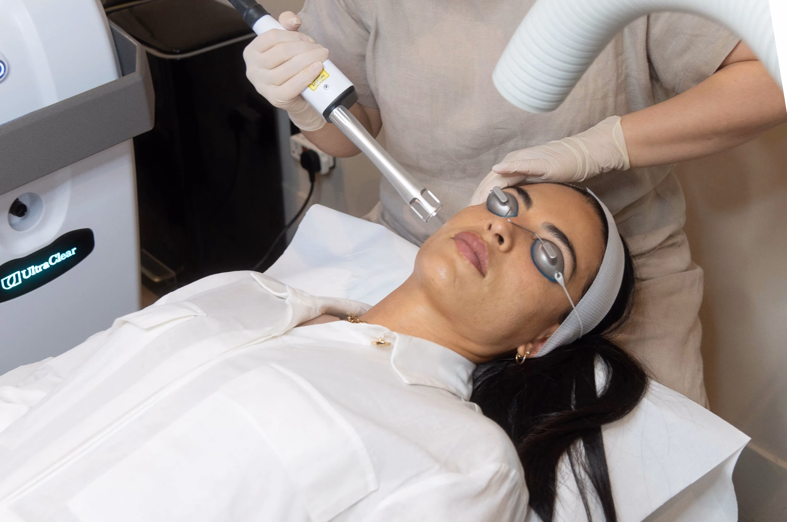 Preparation - The skin is gently cleansed to ensure comfort and safety. Protective eyewear is provided before the session begins.
